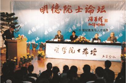 专程回母校参加校庆的肖纪美、俞大光、艾国祥、刘经南4名两院院士,成为庆典上的耀眼明星。2003年11月8日下午,学校特意举办了一场“明德院士论坛”,4名院士围绕“21世纪教育与人才培养”这一主题,发表了精辟而独到的见解,并与师生们进行了热烈的交流对话。当时各大媒体对此皆有报道,论坛反响之大、评价之高,可谓空前。校友对母校的深情难以言表。