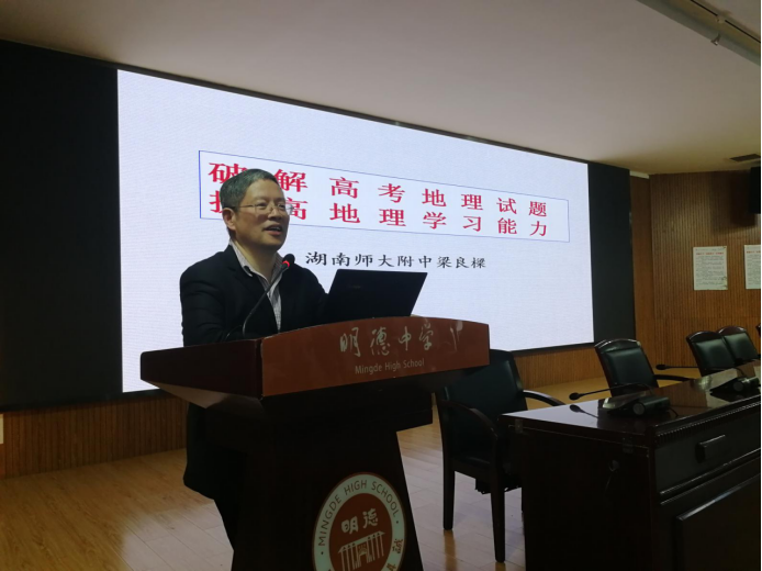 5月10日晚,在距离高考不到一个月之际,湖南省地理特级教师、湖南省地理学会常务理事、长沙市“梁良樑地理工作室”首席名师梁良樑先生做客我校明德讲堂,为高三学生做了一次有关高考地理备考和规范答题的讲座。在梁老师严谨缜密而又不失风趣的课堂引领下,学生对于破解高考地理试题,提升地理学习能力有了更加全面、清晰的认识。