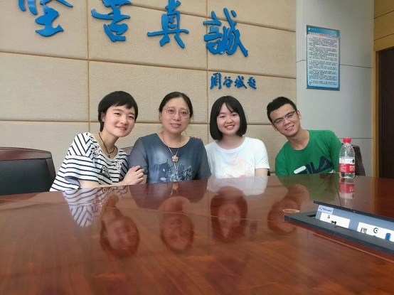 2019届K404班三位学霸和班主任郭文静老师合影