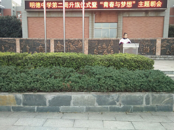 最后,明德中学教育处主任杨智勇主任为我们做了上周的工作总结,并布置本周工作。同学们有序地离开操场,结束了本周的朝会。