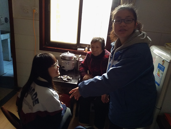 8点50,所有此次活动的成员在目的地前集合,在公益社社长的安排下,所有同学或一二成对,或三五成群,前往敬老院里的各个老人的房间展开了慰问。大家为了让老人展开笑颜,纷纷各显神通:有人用着长沙腔和老爷爷谈论家国大事;有人安静地陪着不善言辞的老奶奶看电视;还有人在旁边帮忙打扫卫生。在慰问老人的过程中,老人用他们独有的方式将岁月的经验讲给我们听,我们也将爱与关心传入了老人的心中,他们的笑容十分温暖,同学们也感到非???。整栋楼似乎因为我们这些年轻人的涌入而暖和起来,一下充满了青春朝气和老人们爽朗的笑声。