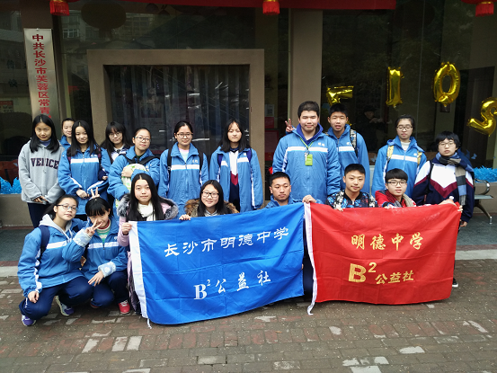 2017年1月15日上午,时值腊月,明德中学B2公益社成员和高一高二的热心公益的同学于芙蓉区常青树老年公寓展开了关爱老人的活动。