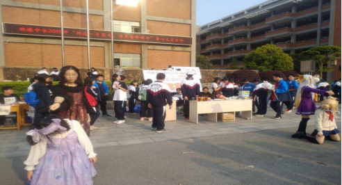 第七节课一下课,参与义卖的班级和社团都准时地到达了义卖长廊,各班级迅速布置好本班的摊位,尽情吆喝。升旗广场瞬时间变得热闹非凡,不少老师、学生积极响应。