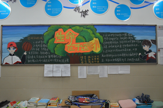 在本次活动中,同学们围绕阳光体育健康成长这一主题,用点、线、面绘画出生动、具有想象力的运动场面,配上如有关运动的好处、健康运动的方式等文字内容。各班团支书、宣传委员群策群力,带领相关制作人员认真出黑板报,虽然不能在运动场上挥洒汗水,但却用不一样的方式和自己的行动为运动健儿加油鼓励。历时一周,同学们花费了许多心血,收获颇多,不仅从中提高了审美艺术素养,同时还从中明白了运动的意义,增强了运动意识,只有拥有健康的体魄才能更好地学习和实现自己的目标。