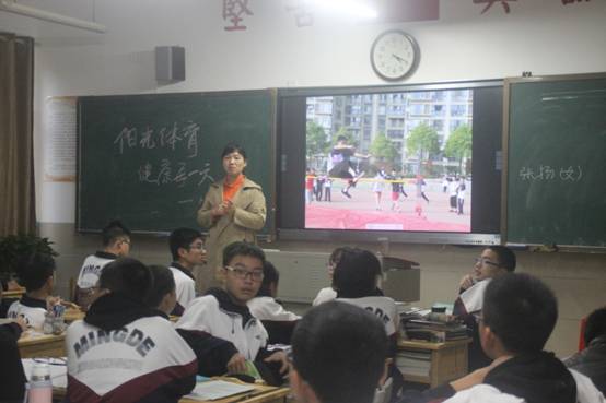 班会开始,学生会干部对各班一一进行检查,绝大部分班级都在认真举行着班会,大部分班级做了充足的准备。有的班制作了内容充实的PPT,台上台下互动气氛良好,有的班进行知识抢答赛,让同学们对体育基本常识有了一定的了解。更有运动会时同学们在赛场上的风采,大家调侃之余是对他们顽强拼搏的体育精神的敬佩。其中一班讲述了从古至今体育的变化与发展,从古时的蹴鞠到如今的足球,可见不论是古人还是现代人,都明白身体对人的重要性,体育锻炼对人的重要性。作为明德学子,这次班会课的举行也让同学们明白了“强身健体”四个字真正的意义。