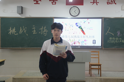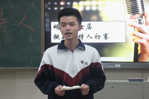本次初赛分两天四场进行,每场都配置了高水平的评委,他们有的是上一届挑战主持人大赛的优胜选手,有的是双代会上凭借演讲得票遥遥领先,成功当选的学生会副主席或各部门部长。既有高二的行家,又有高一的新锐,阵容强大。