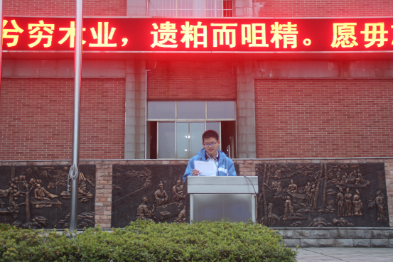 在我们正当年华的青春里,只有用奋斗来装点才不会留下遗憾,武骏奕同学首先向全体同学提出倡议,希望大家珍惜青春的时光,用汗水浇筑成功之花,携手共进,砥砺前行。