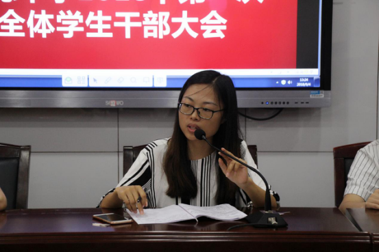 新学期新征程,团委江宇琪老师就社团联盟以及社团的工作进行了安排。他着重强调效率一词,效率,是根本;是我们在紧张的学习中,高质量完成工作的法宝。并期望全体学生干部在新的学期有所收获、有所进步。