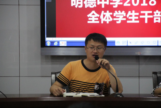 天朗气清,惠风和畅。2018年9月4日中午12:50,明德中学校团委于图书馆一楼报告厅召开了2018年下学期第一次全体学生干部大会。全体高二学生干部参与,团委刘锦书记、雷朋老师以及江宇琪老师出席本次大会。
