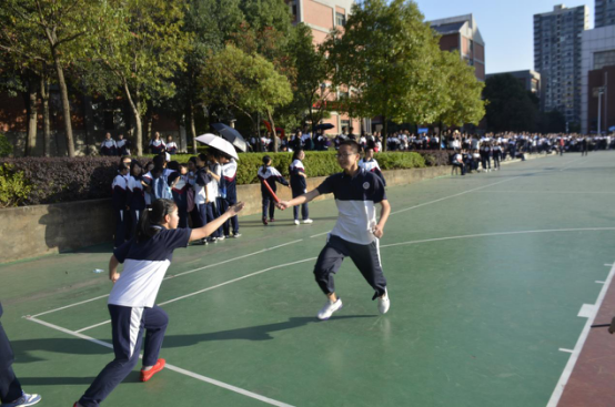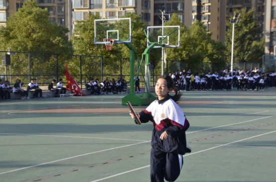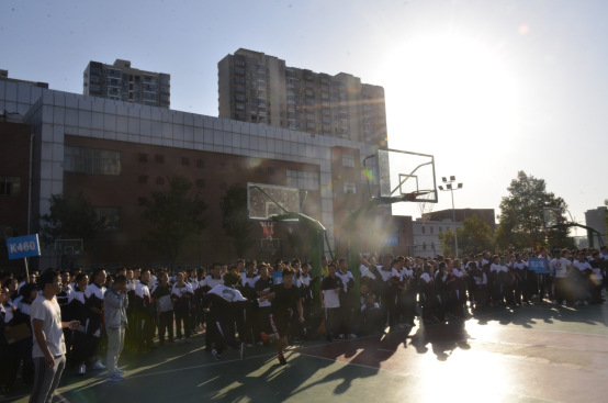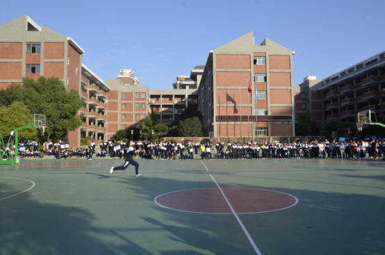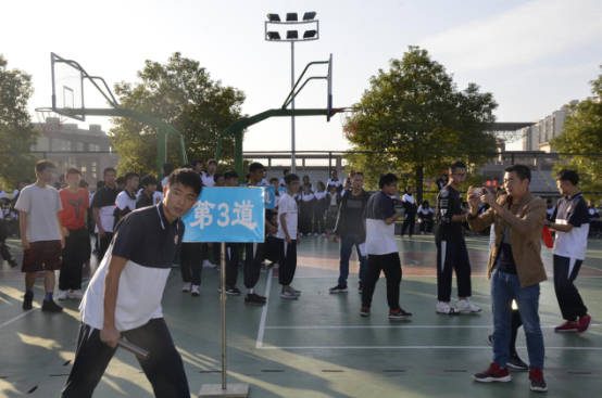 为推进全民健身运动的深入开展,丰富校园文化生活,提高全校师生的身体素质,明德中学于2018年10月29日下午第八节课下课后于本校篮球场举行了高一迎面接力比赛。