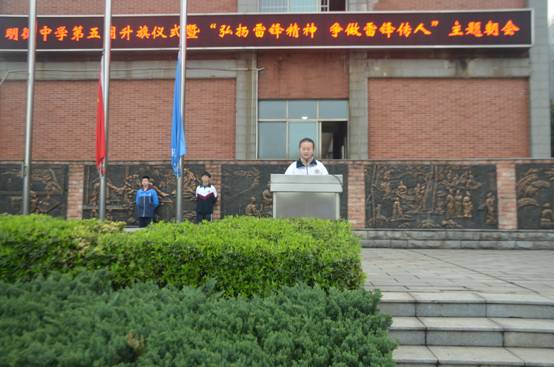 做雷锋传人,建安全校园——明德中学第五周升旗仪式暨“弘扬雷锋精神,争做雷锋传人”主题朝会