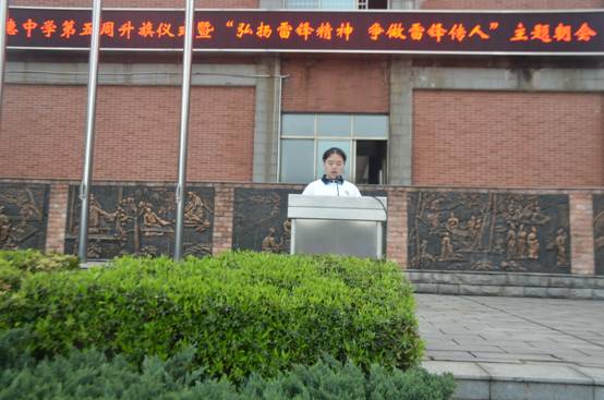 接下来,校团委学生会组织部干事来自K467班的李宇晴为同学们带来她的主题演讲。李宇晴同学在发言中为我们介绍了雷锋同志的优秀品质与无私贡献,并联系生活实际,要求同学们弘扬中华优秀美德,争做雷锋传人,号召同学们将有限的生命投入到无限的为人民服务当中去!