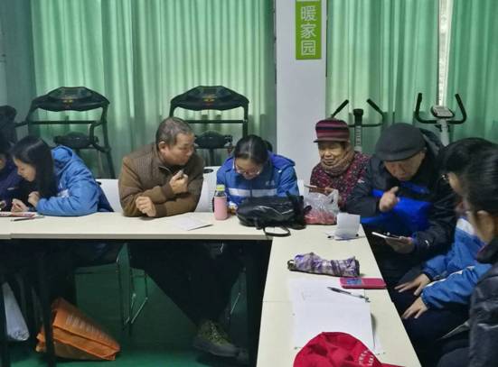 2018年1月7日清晨,长沙市明德中学的志愿者已在校门口集合完毕,即将出发前往桐荫里社区开展微信课堂的活动,用自己的爱心和热情抵御寒风,温暖老人们的心。
