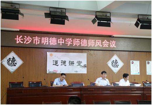 2018年6月4日下午,我校在明德讲堂召开师德师风专项整治工作会议,学校全体教职工参加会议。党委徐林书记传达了市教育局下发的《长沙市中小学教师师德师风建设行动计划(2018-2020)》、《长沙市中小学师德考核负面清单》、《长沙市中小学教师师德师风违规行为专项整治方案》和《师德师风建设三年行动计划工作任务分解表》四个文件,并对教师师德师风考核负面清单和专项整治的五个重点内容进行了详细解读。接下来,刘林祥校长就师德师风专项整治工作作了强调。他要求,全体教职工要深刻领会文件精神,认清新形势,落实新要求,加强师德师风的正面宣传,严格执行师德师风的考核机制。最后,纪委周喜兰书记再次提醒和警示全体教师不要踩纪律“红线”,纪检小组将会继续加大常态化督查的力度,并将于暑假组织更深层次的检查。为增加仪式感,学校校长、书记带头签订了承诺书,并认领了师德考核负面清单。其他领导、干部、教师也都签订了《长沙市明德中学教师师德师风承诺书》、《文明节俭操办婚丧喜庆事宜承诺书》和《长沙市中小学教师师德师风考核负面清单》。