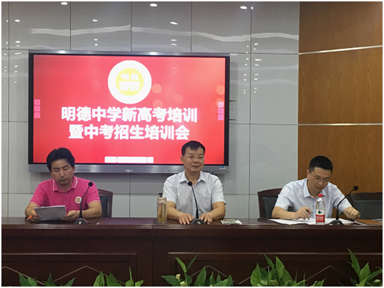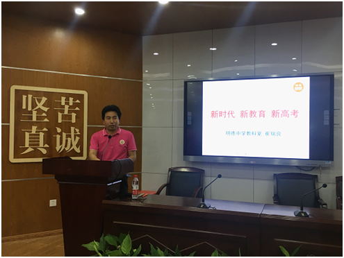 2018年6月29日上午,明德中学新高考培训在我?;菩送际楣菀宦パ醣ǜ嫣傩?。此次培训由教科室崔瑞良主任主讲,2018届高三全体教师参加,学校刘林祥校长、教务处匡拥军主任出席。
