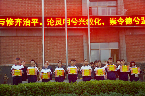 随后,伍卓林副校长对在本次期中考试中取得优异成绩的同学进行了表彰。而获奖的同学都整齐的站在一旁等候,他们的自信与愉悦都刻在了脸上。名单宣读完毕,在颁奖的音乐中,校领导面带笑容地给同学们颁发奖状并对他们所取得的成绩表示祝贺。