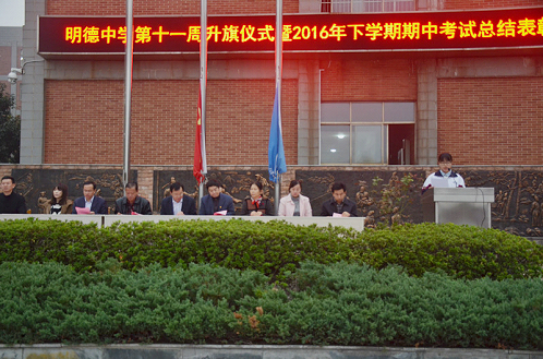 共勉奋进 展望未来——第十一周升旗仪式暨2016年下学期期中考试总结表彰大会