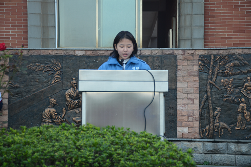 K391班的陈茜同学正在主持本次朝会