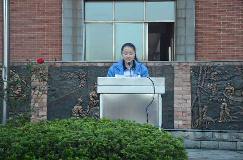 刘栩同学正在进行“传统艺术我传承”主题朝会演讲