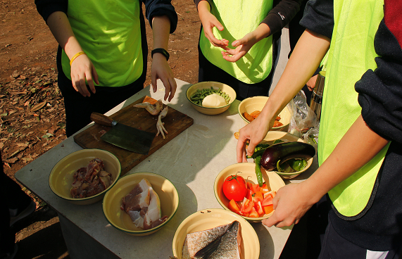 高空挑战后,全体成员开始自己动手做午餐,对于很多人来说,做饭一直都是一个难事,甚至可能都没有做过,但这时候团队的力量就展现出来了,一部分人负责洗菜,一部分负责切菜,一部分负责炒菜。分工合作,其乐融融。当所有菜都煮好的时候,每个小组的成员脸上都洋溢着笑容。