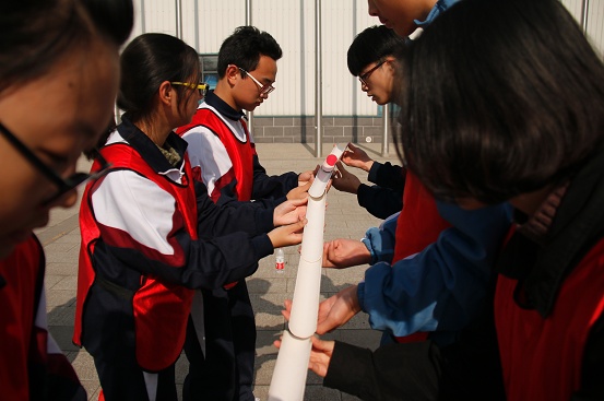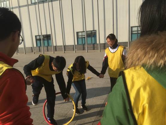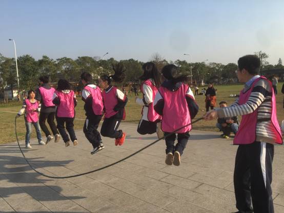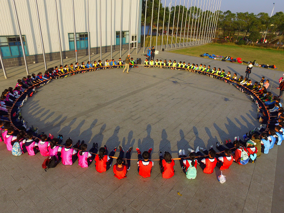 下午两点半,团体训练正式开始了。集体长绳、转接乒乓球、套圈考验、报数比拼等活动一个接一个,每个小队之间都进行比拼。但这只是个比赛,友谊才是第一位,也正是因此,最后一个环节是全体同学围成一个大圈,每个人抓一段绳子,然后舞动,这围成一圈的是人或是绳,都如波浪一般,不断推进,三百下,不多也不少,却把所有参与者的心都连在了一起。