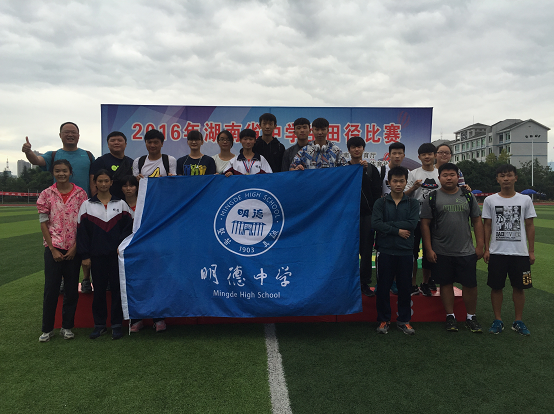 11月26日我集团田径队在长沙市中学生田径比赛当中,高中队在缺少跳跃组的情况下面,还是斗得了高中甲组团体总分第六名、获得精神文明单位称号;明德华兴获得了初中甲组团体总分第三名、获得精神文明单位称号;明德天心获得了初中甲组团体总分第九名。
