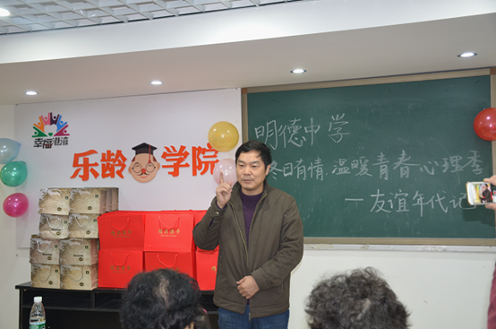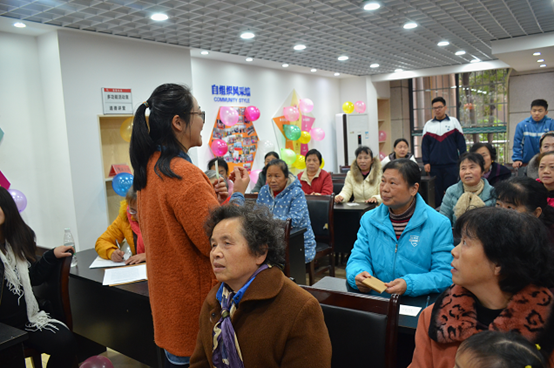 在景程社区银发族老年人活动中心,来自明德中学心理室的高中生们带来了有意思的心理活动,他们要求老人们在明信片上写着一个跟“友谊”有关的词,击鼓传花轮到的老人则要根据这个关键词讲一个有关友谊的故事。