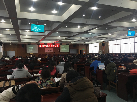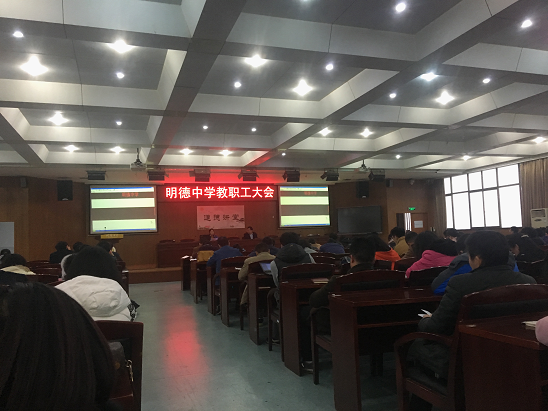首先是伍卓林副校长在全体教职工大会上分享参观外地兄弟学校的感悟,从学校管理的精细化、教学工作的创新化、德育活动的多样化、关注学生的全面发展四个方面进行了介绍和阐释。