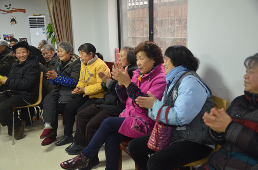 随后,便开始了正式的表演。第一个节目是全体志愿者们精心准备的一首歌:《打靶归来》。激扬的歌声在豹子岭社区里回荡,老人们也都在跟着节奏打着拍子。看着老人们脸上洋溢着的喜悦,志愿者们的心也暖暖的。第二个节目是黄粤惠同学的长笛表演,来自贝多芬的名曲《欢乐颂》,这刚好可以代表志愿者们的心情!第三个节目,三名同学为大家带来了团歌演唱。之后就到了赠送小礼物环节,志愿者们为老人们购买了毛巾,外加承载了志愿者们新春祝福的明信片,这些用他们零花钱购买的小礼品都代表了他们的心意,深深感动了老人的心。老人们有说有笑,对志愿者们十分感谢与关怀。不知不觉,志愿者们又和老人们聊了起来,说了说自己的学校生活,也倾听了老人们的过去。
