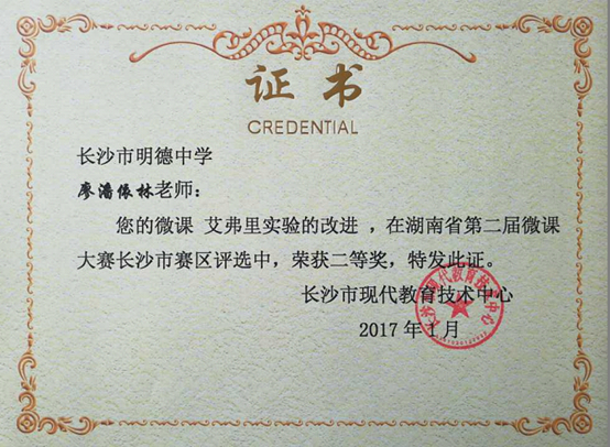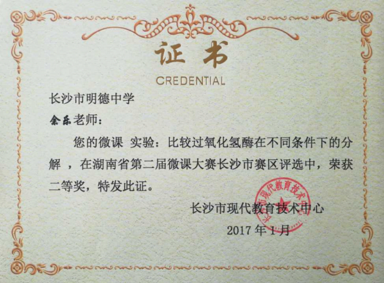 喜报:明德中学2016年度微课建设成果 来源: 发布时间:2017-02-17 10:30:17 浏览次数: 次 【字体:小 大】 喜 报 在2016年度微课程建设和湖南省第二届微课大赛中,我校荣获2016年度微课程建设先进学校,王利老师获2016年度微课程建设先进个人,谢卫平老师获2016年度湖南省第二届微课大赛一等奖,缪婧、廖潘依林、余乐、王利老师获2016年度湖南省第二届微课大赛二等奖,特向全校师生报喜! 分享到: 【打印正文】