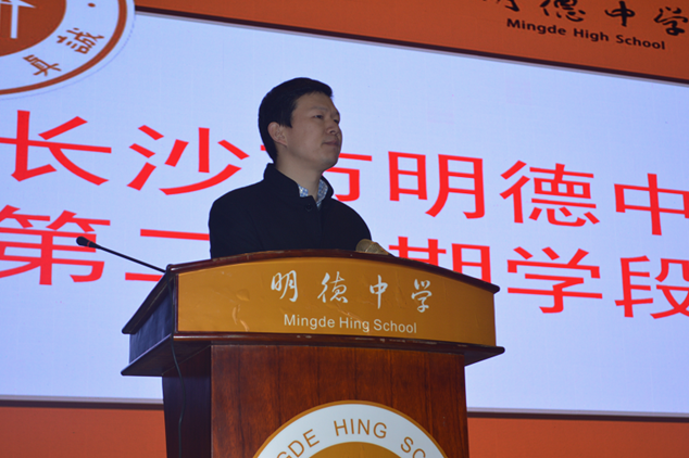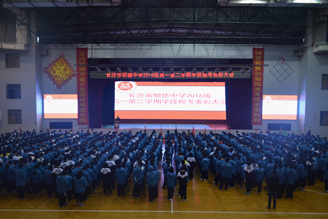 2017年3月25日早7时10分,长沙市明德中学高一年级组全体师生齐聚怀求体育馆,举行了学段??急碚么蠡帷4蠡嵊蒏404班王慧帆同学主持,教务处副主任蒋灿强老师出席了大会。