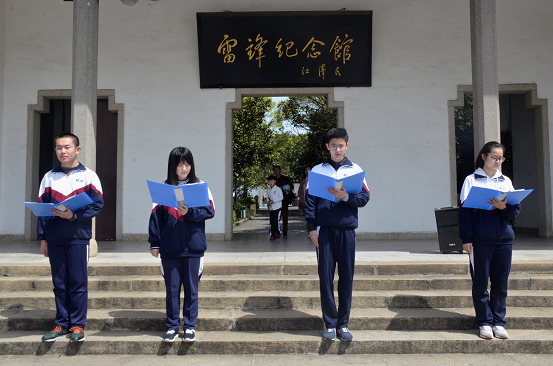 纪念馆前,明德中学团委学生会办公室干事,来自K415班的谢馨莹同学主持本次的现场活动。随后,明德中学团委副书记刘锦老师为本次活动发表了致辞,同时就“中学生该如何学习雷锋”讲述了自己的观点,在场的人都受益匪浅。最后,明德中学带来的诗朗诵《怀念雷锋》,诚挚的言语无不在我们心中激荡,振奋着我们努力向前。