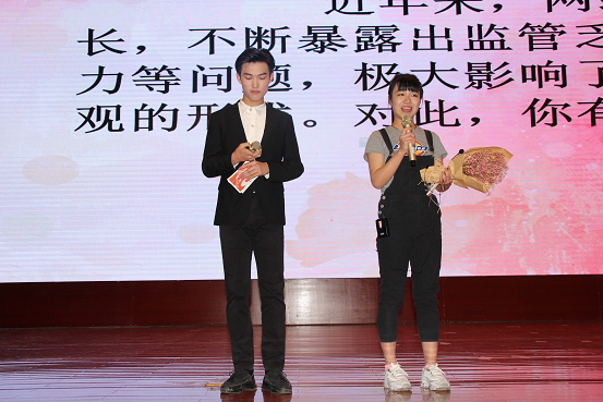 第二场清纯可爱的金涵的个性解读却有另一番风采。她抽到的题目是“近年来,网络直播平台野蛮生长,不断暴露出监管乏力、内容低俗暴力等问题,极大影响了青少年正确价值观的形成。对此,你有什么看法?”她结合社会主义核心价值观讲述了这类问题的弊端,并呼吁同学要合理使用网络。