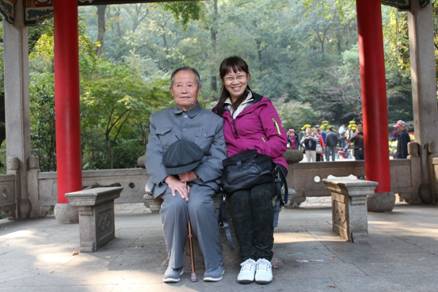 校庆前一日,迎来了俞老一行。背部佝偻、手柱拐杖,但步履稳健,笑容可掬的俞老,坐着轮椅、满面皱纹却亲切慈祥的俞奶奶,以及他的女儿和护理阿姨。