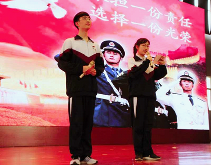 杨天源同学(左)主持过我校的两次元旦文艺汇演、社团节、“北斗”导航专题讲座、高三成人礼、魅力女生决选等大型活动