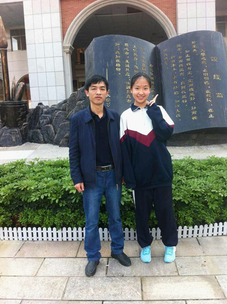 K380班谢思琦同学(右)与与班主任邹伟光老师(左)