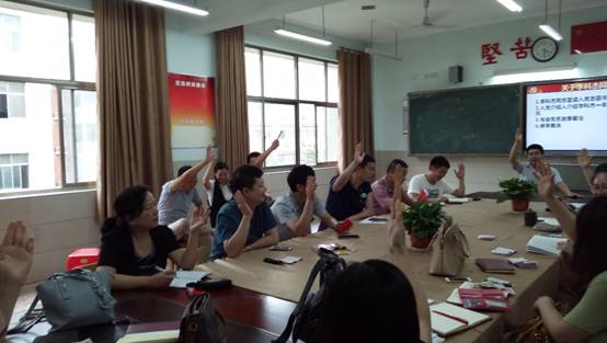 为了进一步巩固落实“两学一做”学习教育常态化制度化工作,2017年6月19日下午4点10分,高一党支部全体党员教师在承德楼305室(高一“心灵相约”办公室)召开了党员大会。大会由高一支部书记黄宗廉老师主持。