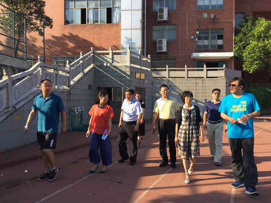 在我校校长刘林祥、副校长陶旅枫等领导的陪同下,缪局长面带微笑走进了怀求体育馆,馆内的篮球队和跆拳道队依次在各自场地展开有序训练,积极饱满的精神面貌和一丝不苟的训练状态得到了市局领导的赞扬和充分肯定。再走向田径场,看到田径运动员们在烈日下挥汗如雨,领导们关切询问了他们的训练、生活情况,并为大家加油鼓劲,鼓励运动员们刻苦训练、不畏艰难、团结拼搏,同时再三叮嘱教练员和运动员在刻苦训练的同时,还要注意防暑降温工作,做到安全训练,劳逸结合,以最佳的状态迎接即将到来的各项比赛。