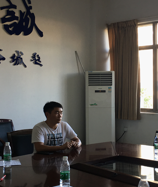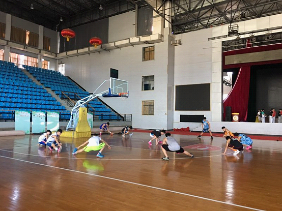 篮球队总教练宁豫军向慰问领导们就明德篮球项目发展情况作简要汇报