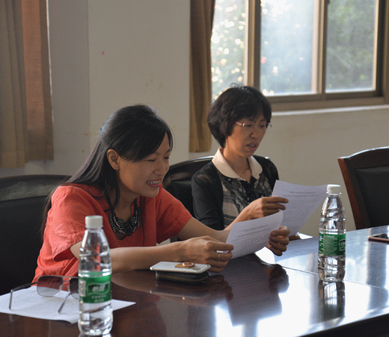 长沙市教育局党委委员、副局长缪雅琴(右)对我校体育各项目的发展情况作重要指示