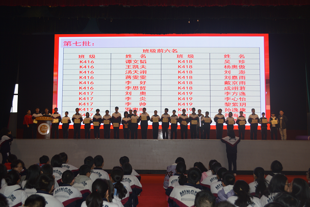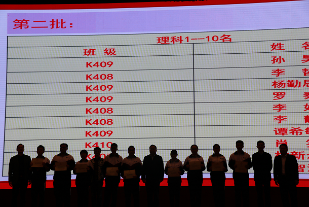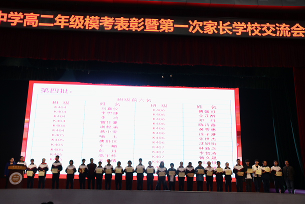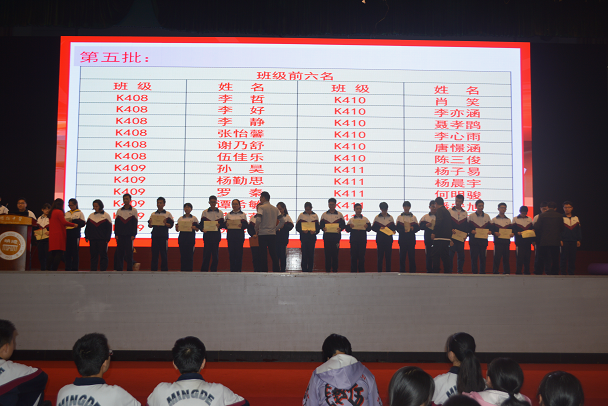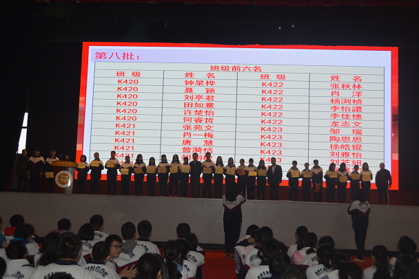 第二个环节,由蒋灿强副主任宣布本次??椴馐员碚镁龆?,授奖环节由K421班许洁同学主持,与会的领导为高二年级的学习榜样颁发获奖证书,本次颁奖创新了形式,各班班主任还分别上台为各班的学习模范颁奖。本次获奖同学共有162名同学获奖,所有颁奖嘉宾和获奖同学均合影留念并一起分享收获的喜悦。