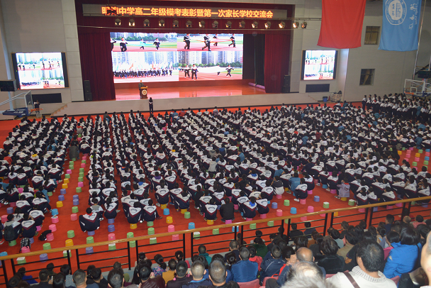 为进一步增进家长和学校之间的联系,更好地形成学校和家庭教育的合力,10月15日下午,明德中学高二年级在体育馆召开了本学期第一次家长学校培训交流会。负责联点高二年级的陶旅枫副校长,教育处杨智勇主任、蒋灿强副主任,学校团委刘锦副书记、高二年级组长吴永果老师和全体班主任参加了本次会议,大会由蒋灿强副主任主持。
