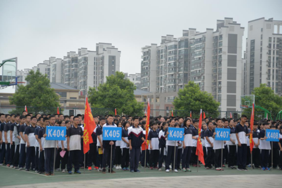 全校师生在升旗广场参加开学典礼