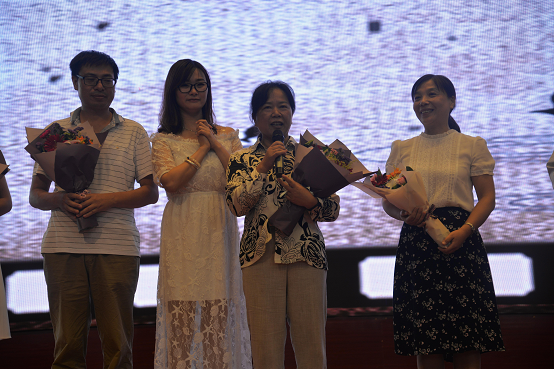 “时光一逝永不回,往事只能回味……春风又吹红了花蕊,你已经也添了新岁……”黄黎明老师的一首《往事只能回味》将人引入学生时代的青葱岁月,电子屏闪现着这五位毕业于明德又返回明德任教老师们高中时代的照片,回忆虽逝,却依旧在空气中飘香。尔后,五位教师和他们的老师们同台,手捧鲜花,拜谢师恩,相拥而欢。当老师的老师回忆起那个时代,“黄黎明在我班上读书的时候,喜欢看小说,经常藏在抽屉下面阅读,多次被我没收。我想,这也是他后来为什么成为语文老师的原因了吧。他喜欢阅读,喜欢文学。这是成为一个优秀的语文教师的基本品质?!钡蹦甑挠镂睦鲜?、现在的长沙市首席语文名师蒋雁鸣老师如是说。 “我是明德的学生,在明德中学,我渡过了学生时代最美好的六年时光。明德培养了我,使我由一个懵懂的小学毕业生成长为一名优秀的高中毕业生。四年大学毕业后,我义无反顾的再次选择了明德。我回到了母校工作。因为我是明德的学生,我深情的爱着我的母校和我的恩师?;氐侥感#T笆窍娲郝返睦闲T?。校园里的一草一木,一栋栋教学楼,一间间教室,都是那么熟悉。在校园的每个角落,都能找到自己学生时代的梦想和希望。尤其是当年教过我的那些老师,还是那么亲切。在工作中,我也曾经迷茫,也曾经彷徨,也曾不知所措,也曾经犯过错。我会去找我的老师,请他们给我指点迷津。而我的老师们,也会一如既往的,批评我,教育我,为我指明方向,激励我不断进步。如今,我的老师们,都是明德响当当的名师。他们无论是在学识上,在为人处事上,在工作上,都是我学习的榜样和楷模。今天,我最想表达的就是感谢。感谢母校,感谢恩师,感谢明德!”梁栋老师对母校深情告白并向恩师深鞠一躬。
