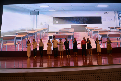明德教师带来了精心准备的歌曲串烧,一个个“蒙面歌王”的独唱或对唱,让明德情怀被漫不经心地点燃,无声无息地燃烧。最后以众人合唱一曲《光阴的故事》落下帷幕。教育的光阴,艰辛且幸福,痛并快乐着。