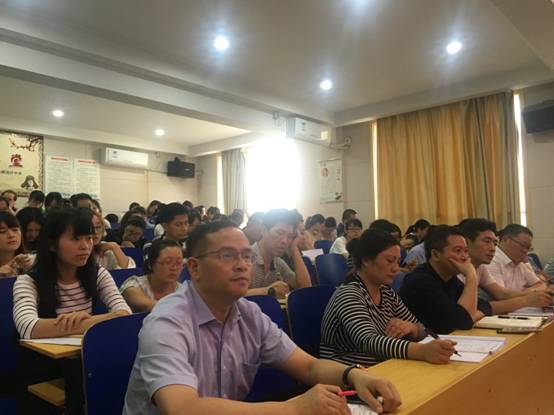 下午4:20, 明德洞井中学全体教师齐聚一堂,认真聆听刘林祥校长的报告。刘校长首先分析了明德洞井中学面临的新的发展机遇,一是周边楼盘渐趋成熟,对优质教育的需求不断增加;二是作为集团总校的明德中学将与雨花区区政府协商,为明德洞井中学进一步提质升级设计方案;三是明德洞井中学的生源状况得到了较大改观,升入明徳中学就读高中的人数和高考优秀率逐年增加,对今后办学有利;四是现在的政治环境风清气正,讲求依法规范办学,如阳光招生、严格规范教辅资料的征订等,这也有利于我们专注于教学,走内涵发展之路,当然也我们要研究多创新,充分发挥教师的主观能动性,出产更多的原创资料、更多的优秀学生。