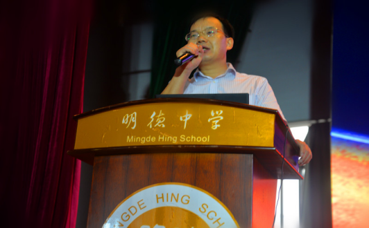 会议第一阶段在怀求体育馆举行,以“创新人才培养策略”为主题进行研讨,由我校副校长伍卓林作专题报告。报告中,他针对“新形势下的优生培养”,结合明德中学的教育实际,畅谈“德为本”“细为先”“启为纲”的有效培养策略,还从学科素养立意下的高考命题等方面,谈到了创新人才的培养,引发全场老师的共鸣。