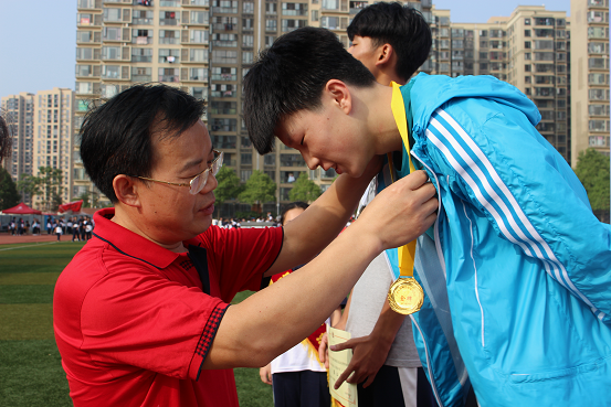 明德中学校长刘林祥为获奖运动员颁奖