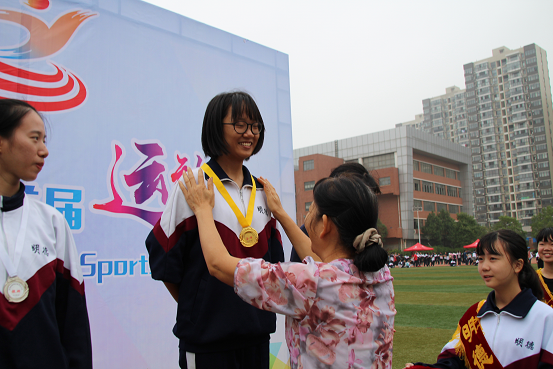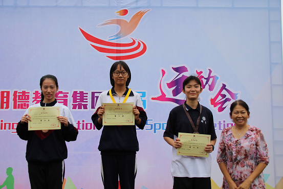 明德中学纪委书记周喜兰为获奖运动员颁奖