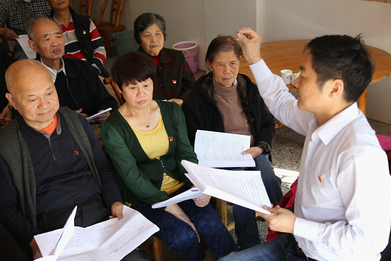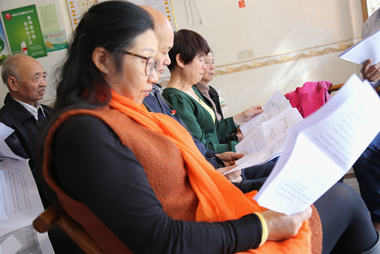 退休党员教师认真聆听